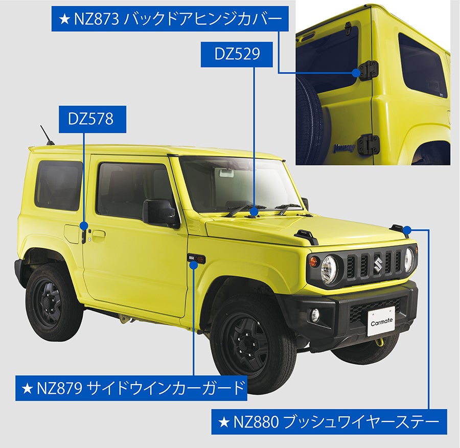 株式会社カーメイト(本社:東京都豊島区)は、ジムニー/ジムニーシエラの外装に無骨さをプラスする専用設計のドレスアップパーツを、2月14日(水)より発売いたしました。「バックドアヒンジカバー」「サイドウインカーガード」「ブッシュワイヤーステー」の3アイテムをラインアップしております。詳細は以下をご覧ください。