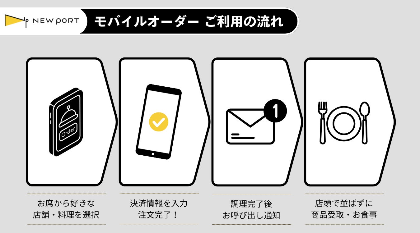 「NEW PORT」は、複数テナントの商品を一元的に閲覧・注文できるモバイルオーダーシステムです。