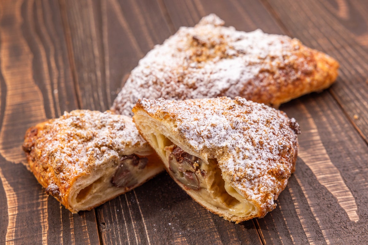 宮崎県美郷町産和栗の渋皮煮とマロンクリームを、クロワッサン生地で包み焼き上げました。生地に混ぜたコーヒークランブルのザクザク食感がアクセントに♪