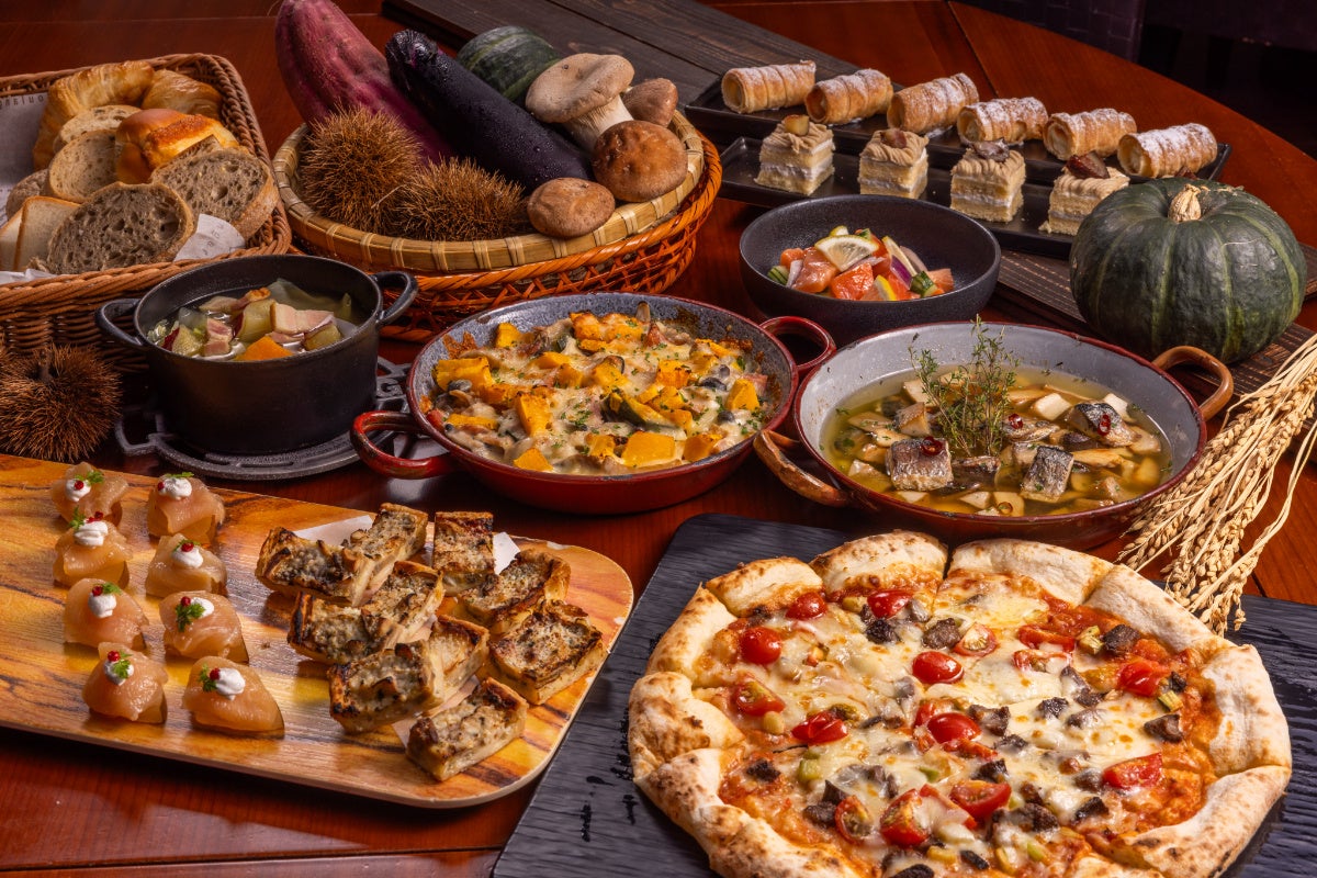 オードブルや石窯で焼き上げるピッツァ、デザートまで、かぼちゃや茄子、秋刀魚などの秋の味覚をふんだんに使用したメニューをご用意しました。シェフが食材からこだわり作り上げた料理をお楽しみください。