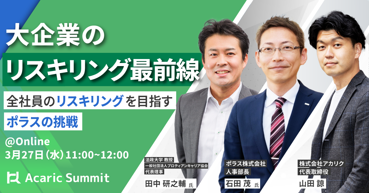 2024年3月27日(水)11:00 - 12:00 @オンライン【ポラス株式会社 人事部長 石田氏 × 法政大学 キャリアデザイン学部教授 田中氏が登壇】