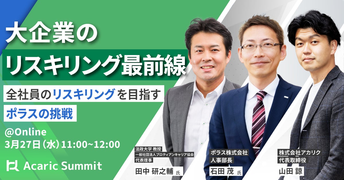 大企業のリスキリング最前線 全社員のリスキリングを目指すポラスの挑戦|3月27日(水)開催