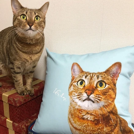 写真を送ると、そっくりのイラストがプリントされたクッションを作ってもらうことができます。そのクッションで寛ぐ愛犬・愛猫の姿はきっと愛おしさ満点です。