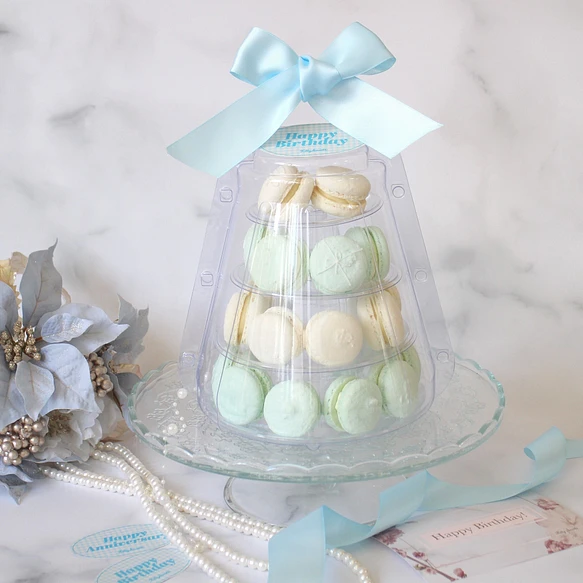 19個のマカロンのセット。特別感もあり、ケーキよりも手軽に楽しめます。バレンタイン用カードもつけることができるので、写真撮影にもぴったり。