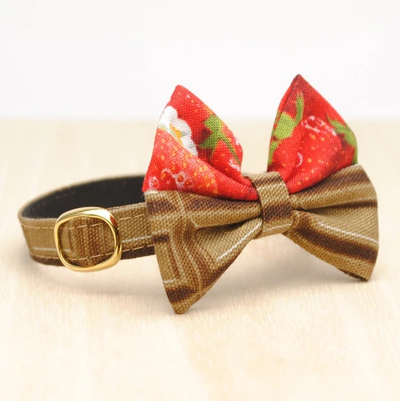 イチゴとチョコレートがプリントされたバレンタインらしい首輪。猫ちゃんも一緒にバレンタイン気分を味わうことができます。