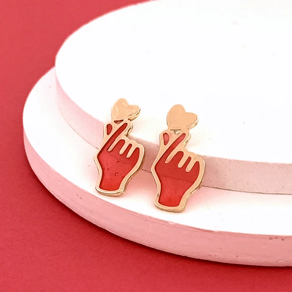 指ハートのピアス。7色から選ぶことができます。さりげなく推しへの愛をアピールすることができます。