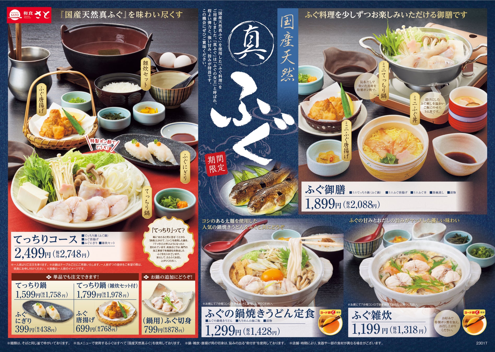 - 和食さと 「国産天然 真ふぐ」を使った豪華メニューが期間限定で登場♪
