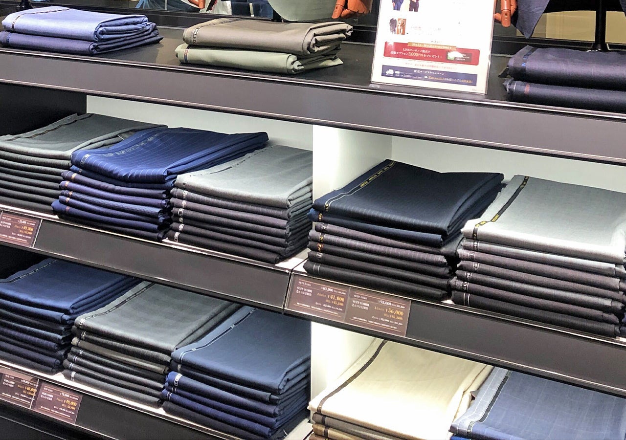オーダースーツの特性上、どうしても発生する残り1~2着分の「切れ端」生地を集め、お得にお仕立ていただけるようになりました。