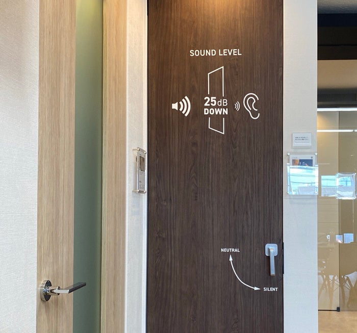 当社は年2回の新商品のリリースに合わせて各ショールームの改装を進めております。今回の久留米無人ショールーム改装では、8月にリリースされた最新の商品を多数展示しました。中でも生活音に配慮する遮音ドア「CALM(カーム)」は実際に遮音効果を体験できるボックスルームを設置して、25デシベル相当の騒音カットを実際に確認することができます。