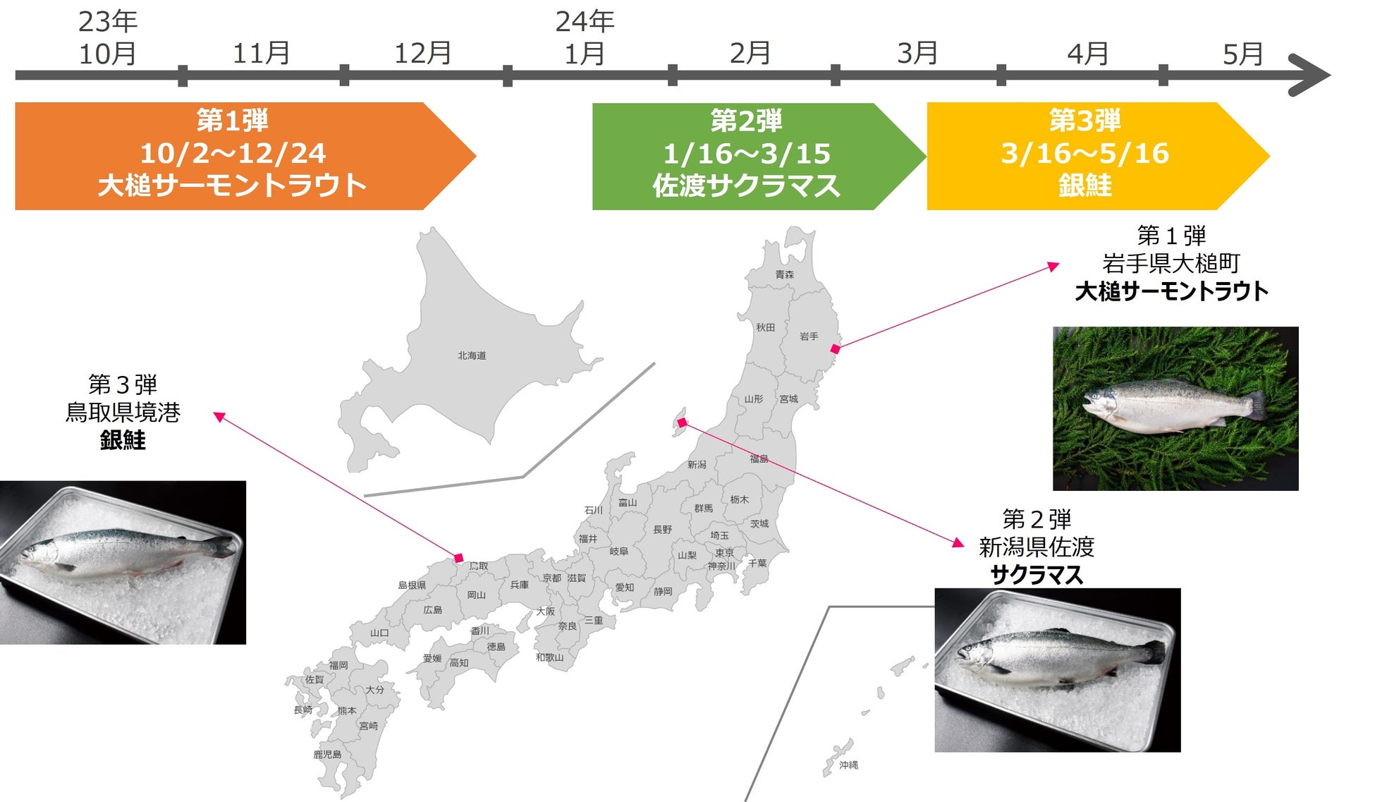 株式会社ライドオンエクスプレスホールディングス(本社:東京都港区、代表取締役社長:江見 朗)は、グループ企業が展開する、宅配寿司「銀のさら」において、旬の食材や希少なネタなどを公式WEBサイトでのみ期間限定で販売する「いま!これ!勝負ネタ」として、『佐渡サクラマス』を販売する「極上トロキャンペーン」を、2024年1月16日(火)~開始いたします。
