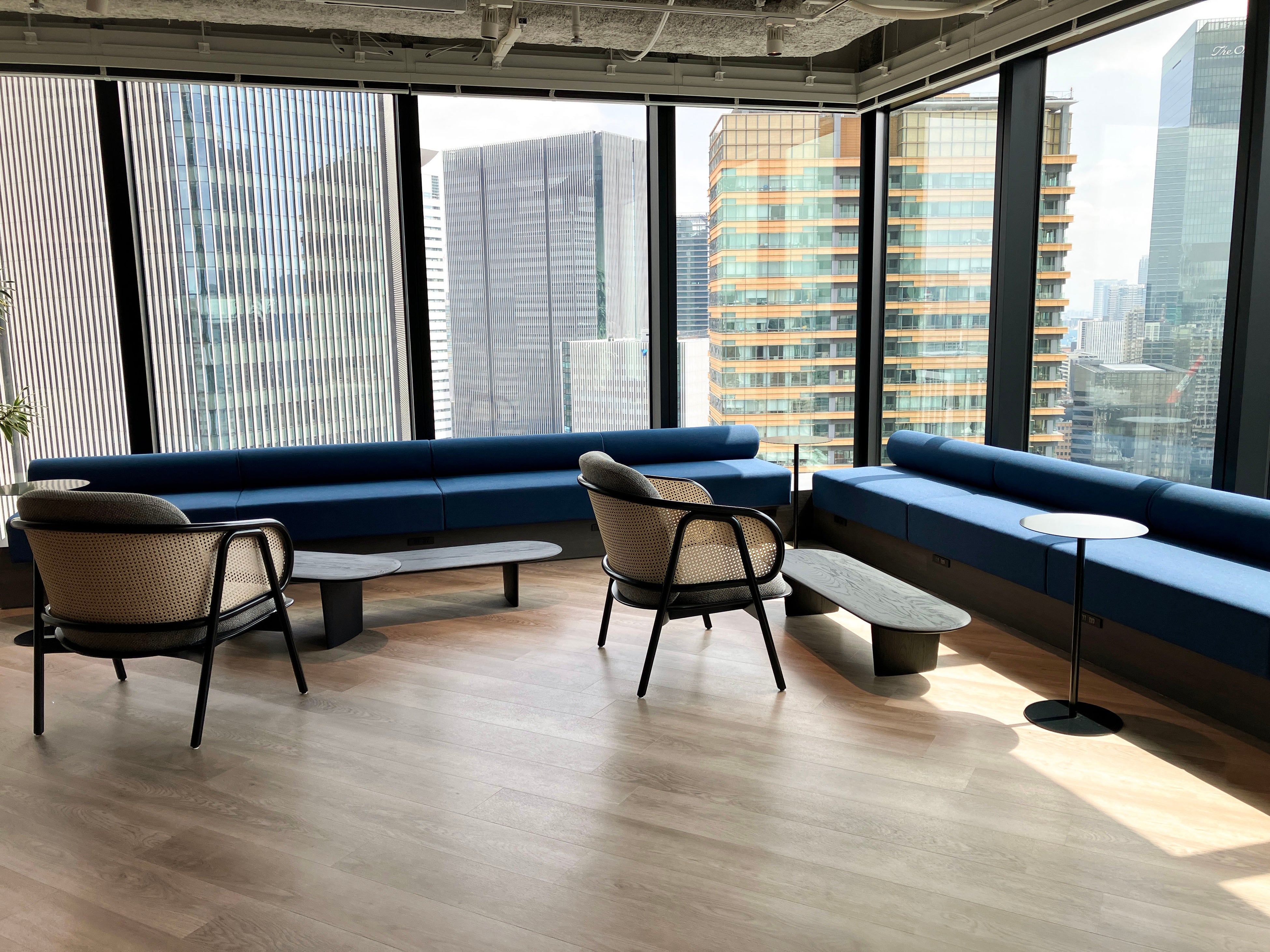 新オフィスは「溜池山王駅」「国会議事堂前駅」に直結し、雨に濡れない快適なアクセスを誇ります。23階の執務フロアには当社と、当社のグループ会社WEAVAの両社がワンフロアに集結します。 開放的なラウンジスペースや多様な会議室を共有し、新たなシナジーを創出します。また、22階には 充実した機能を持つ両社のショールームを完備しました。ビル内には、赤坂の絶景を見下ろし、自然との 繋がりを感じられるデザインのスカイラウンジなど充実した施設が備わっており、多様で新しい働き方を実現する最先端のワークプレイスとなっています。