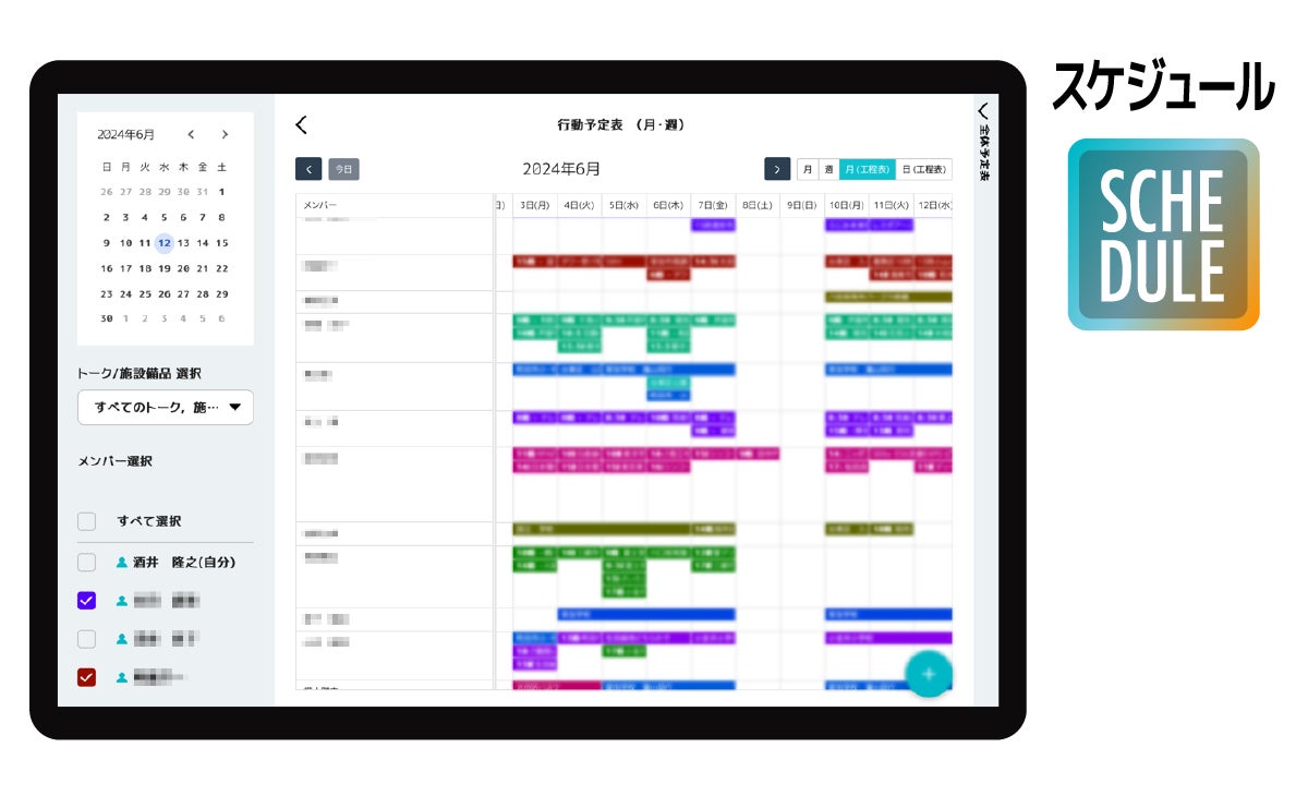 「direct Apps」の「スケジュール」機能は、ホワイトボード型の全体予定表と個人のスケジュールを融合させた予定管理ツールです。施設・備品の予約管理もでき、業務に関わるさまざまな情報を、社内だけでなく社外メンバーとも簡単に共有・管理できます。iCal形式で他のカレンダーアプリと連携することもできます。