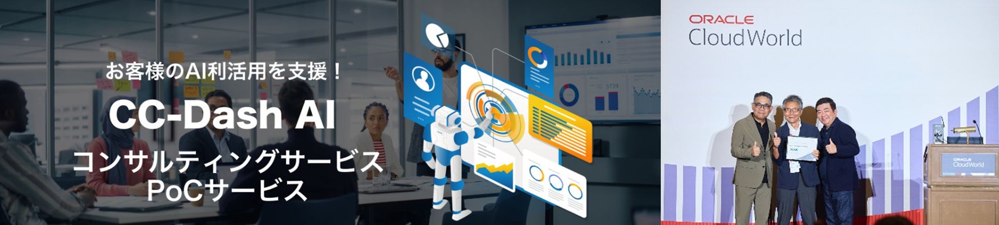 クロスキャットは、2022年よりAIなどの先端IT人材を採用する新卒スペシャリスト採用活動を開始し、2023年にAI関連の専門組織を立ち上げました。そして、お客様のAI活用を支援するサービス「CC-Dash AI」(https://xcc-dash.jp/cc-dash-ai/)を中心に、多様なAI関連サービスを展開しています。サービスの開発にあたっては、長年にわたり良好な関係を構築している日本オラクル株式会社との連携を強化しています。最近では、Oracle Cloud Infrastructure (OCI) Generative AI Serviceなどを活用し、チャットボットサービス「CChat」を開発したことなどから、「2024 Oracle Partner Awards - Japan Innovation Category」を受賞いたしました。