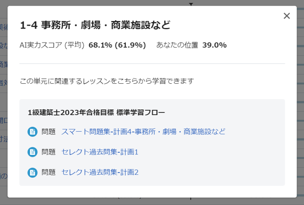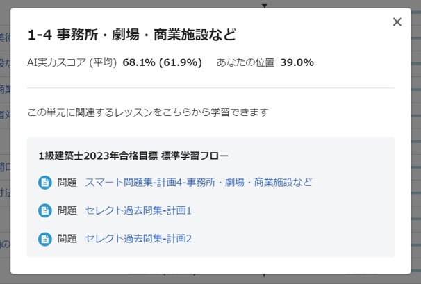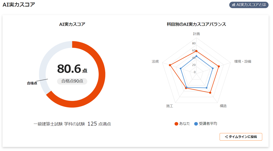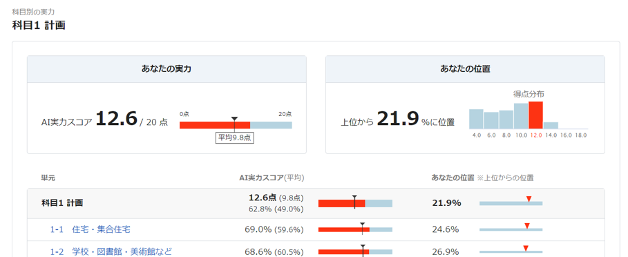 *上記のAI実力スコアは、1級建築士試験 学科の試験に対応しています。