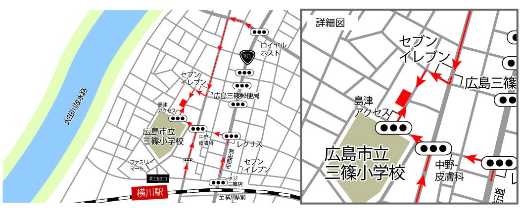 広島市西区三篠町は、広島市中心部近くに位置し、鉄道やバス等の公共交通機関も充実しており、車も含め交通手段を選ばずアクセスしやすい立地です。