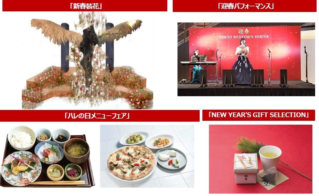 このほか、2022年1月2日(日)の初売りから最大80%OFFとなるTOKYO MIDTOWN SALE(東京ミッドタウンセール)がスタート。また縁起の良い食材を使用した華やかなメニュー「ハレの日メニューフェア」を期間限定でお届けします。さらに、年末年始のご挨拶や、ご家族や親しい人と楽しむお正月にぴったりな手土産セレクション「NEW YEAR’S GIFT SELECTION」をご準備してお迎えします。