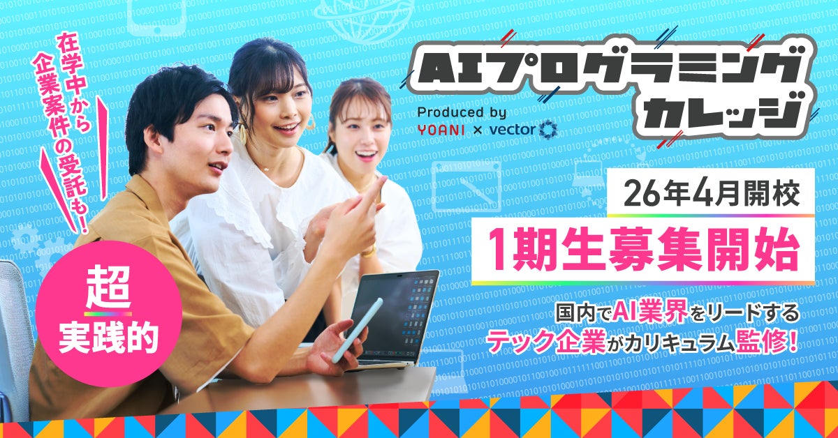 代アニ×ベクトル 共同プロデュース 3年制・全日制の超実践型プログラミングスクール『AIプログラミングカレッジ』 2026年4月開校に先駆け、1期生5名を特別募集