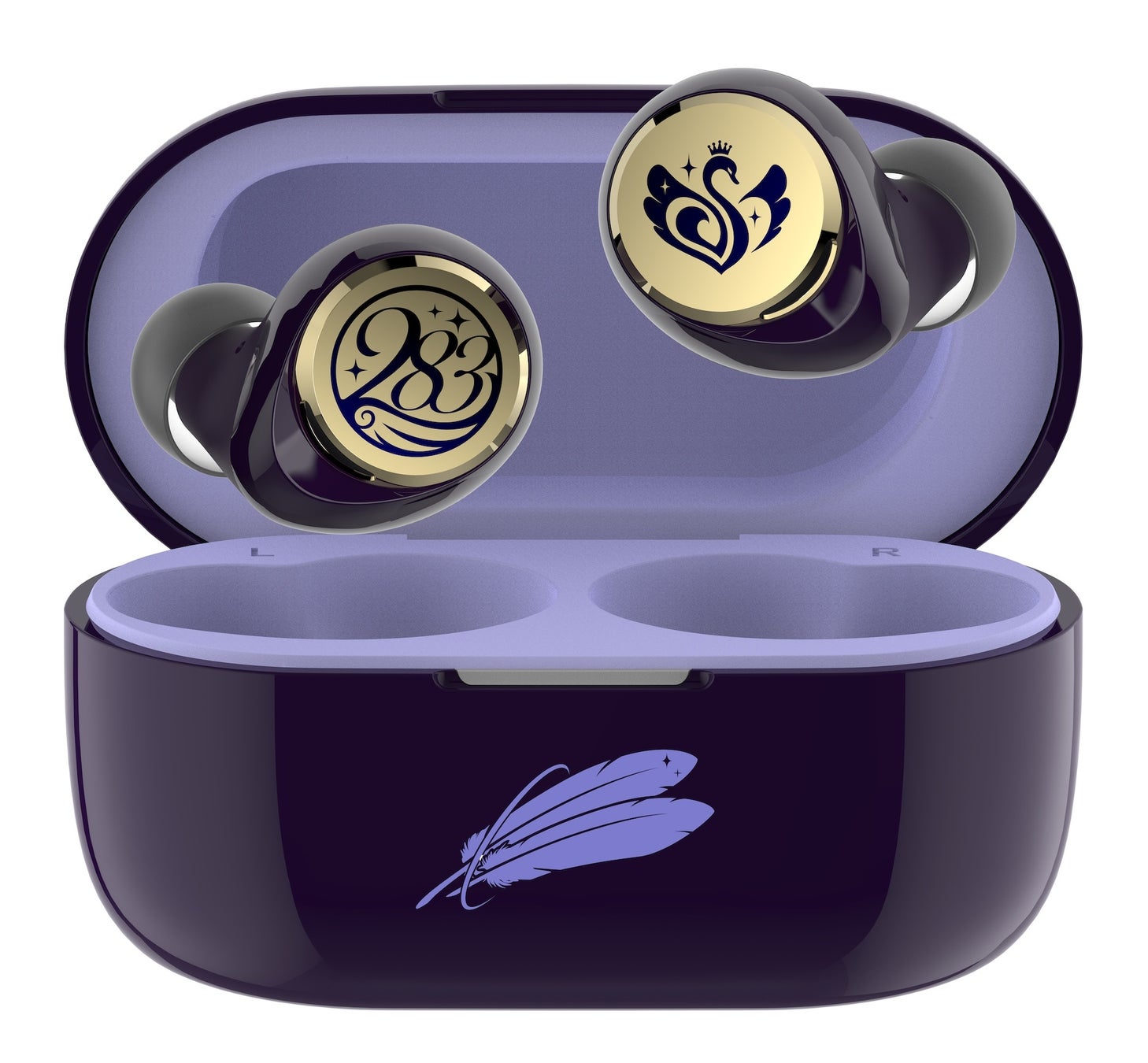 チャージングケースは、淡く柔らかいイメージの「トワイライト」モデルと、激しくロックなイメージの「ナイトフォール」モデル。ワンポイントには、アイドルマスター シャイニーカラーズを象徴する”羽根”を、イヤホン本体にはスワンマークと283プロダクションのロゴをあしらいました。普段使いしやすいカラーリングと、こだわりの塗装により高級感を演出。デザインと作品コンセプトの表現を両立させた仕様です。