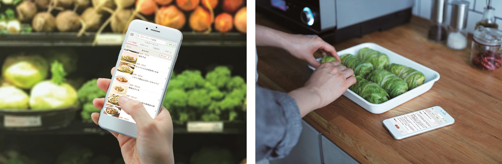 献立決めや本体の操作がスマートフォンでラクに行える「ヘルシーシェフアプリ」(*10)と連携し、日々の食事づくりをサポートする。