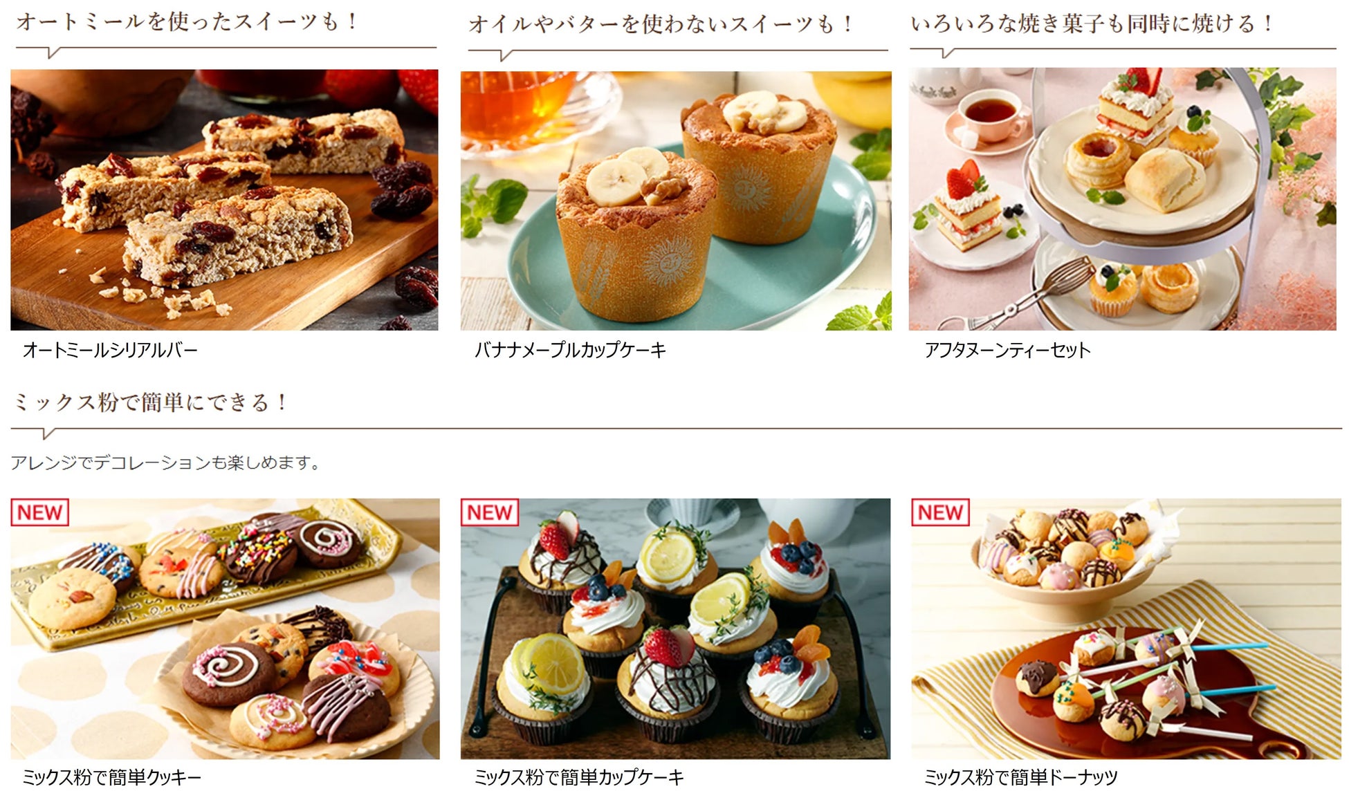 新たにミックス粉を使った簡単レシピも増え、多彩なスイーツが自宅で手軽に調理できます。