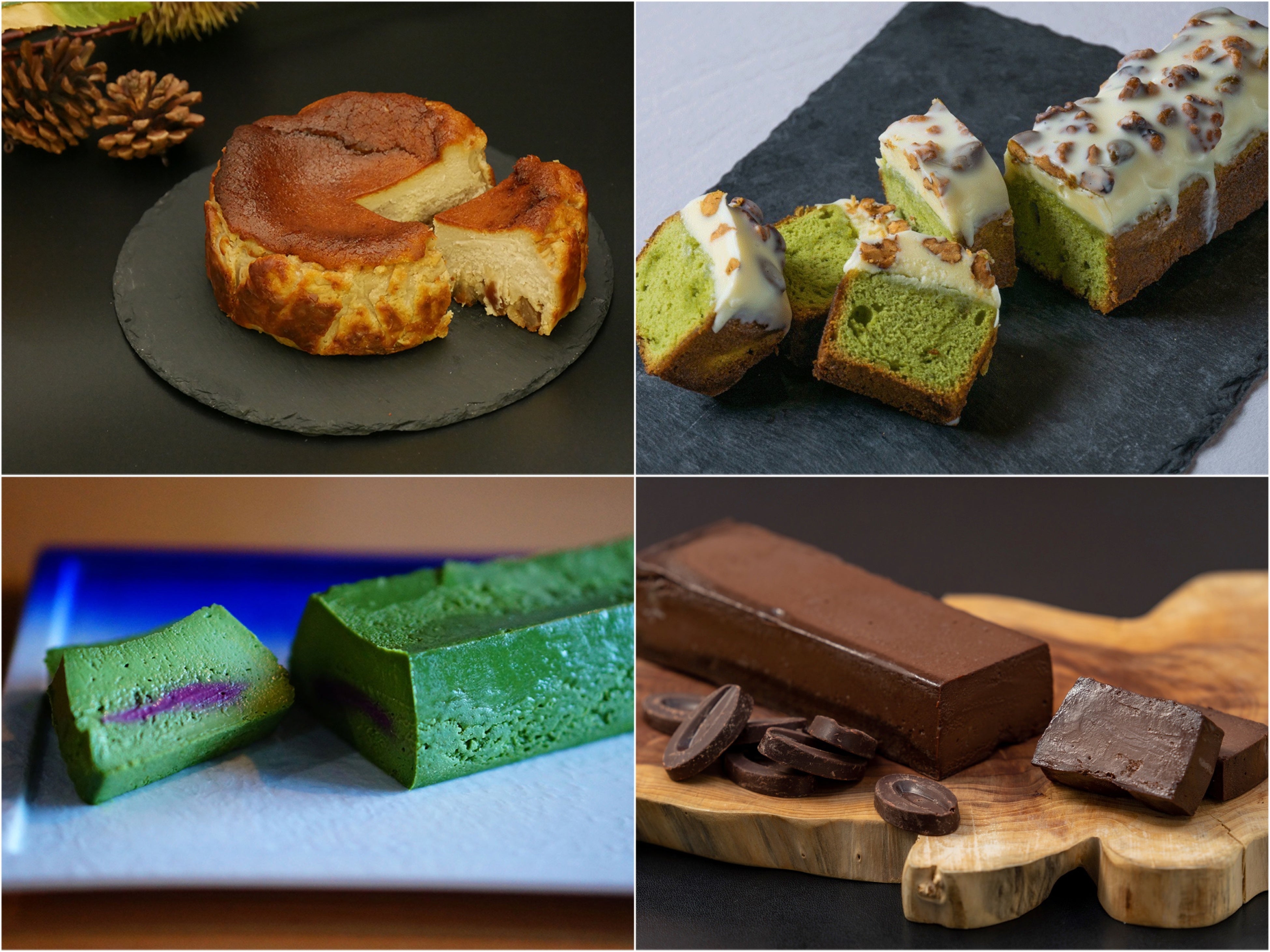 ケーキは、TOYO onlineで特に女性から人気のある4種「ブーダンテリーヌ・ド・ショコラ」「ホワイトチョコと八女茶のパウンドケーキ」「八女茶のチーズケーキ」「栗のバスクチーズケーキ」からお選びいただけます。ソラフラワーのリースにはエディブルフラワーが彩りを添える3種類のフレーバーのメレンゲクッキーがコラボ。合わせる花はHervé Chatelainの代表的な商品であるボールビジューに加え、今回はリースも登場します。