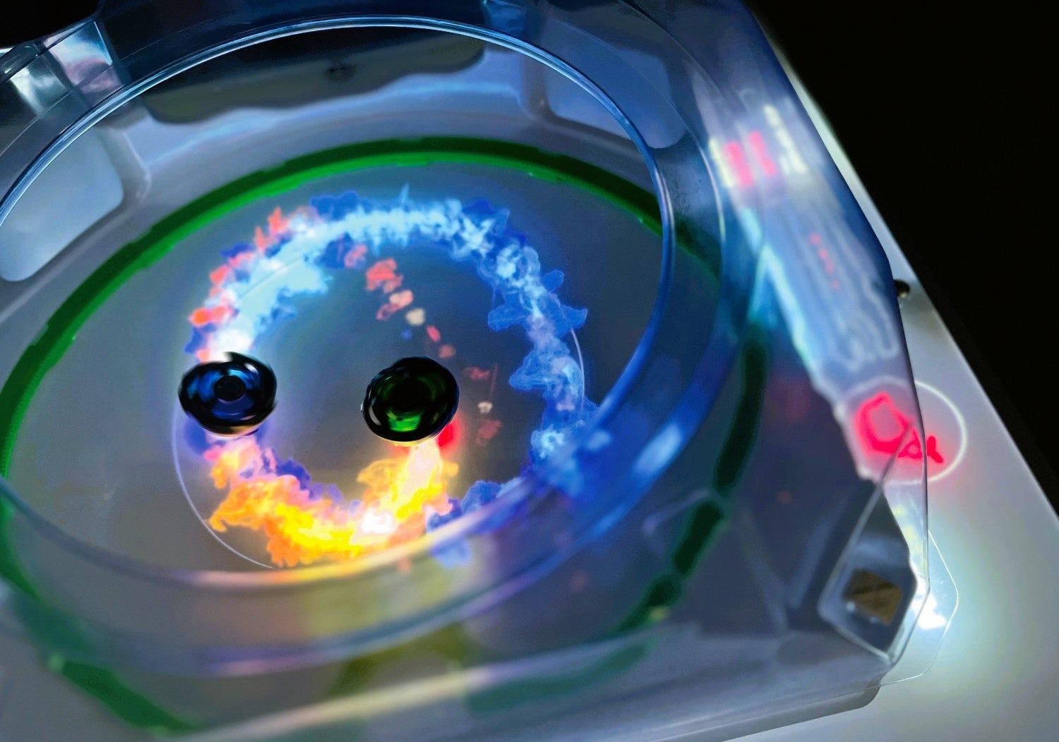 誰でも自由に光の演出が楽しめる1人プレイモードと、対戦が楽しめる2人プレイモードがあり、『BEYBLADE X』の世界観をイメージしたスタイリッシュな映像演出や効果音によって、ベイブレードファンの方も未体験の方も、それぞれの遊び方で楽しむことができます。
