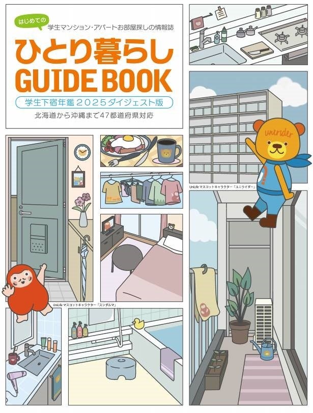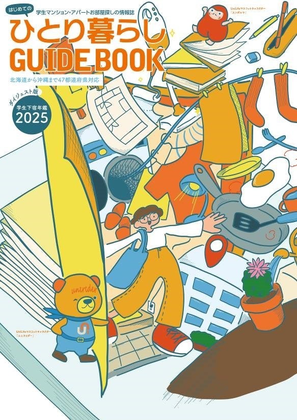 本コンペ1位作品は、「学生下宿年鑑2025ダイジェスト版 ひとり暮らしGUIDE BOOK」(11月15日発行予定)の表紙デザインに採用されます。本誌は全国の高校や当社グループのお部屋紹介店舗(UniLife)に設置され、毎年、多くの学生や保護者の方が手にします。