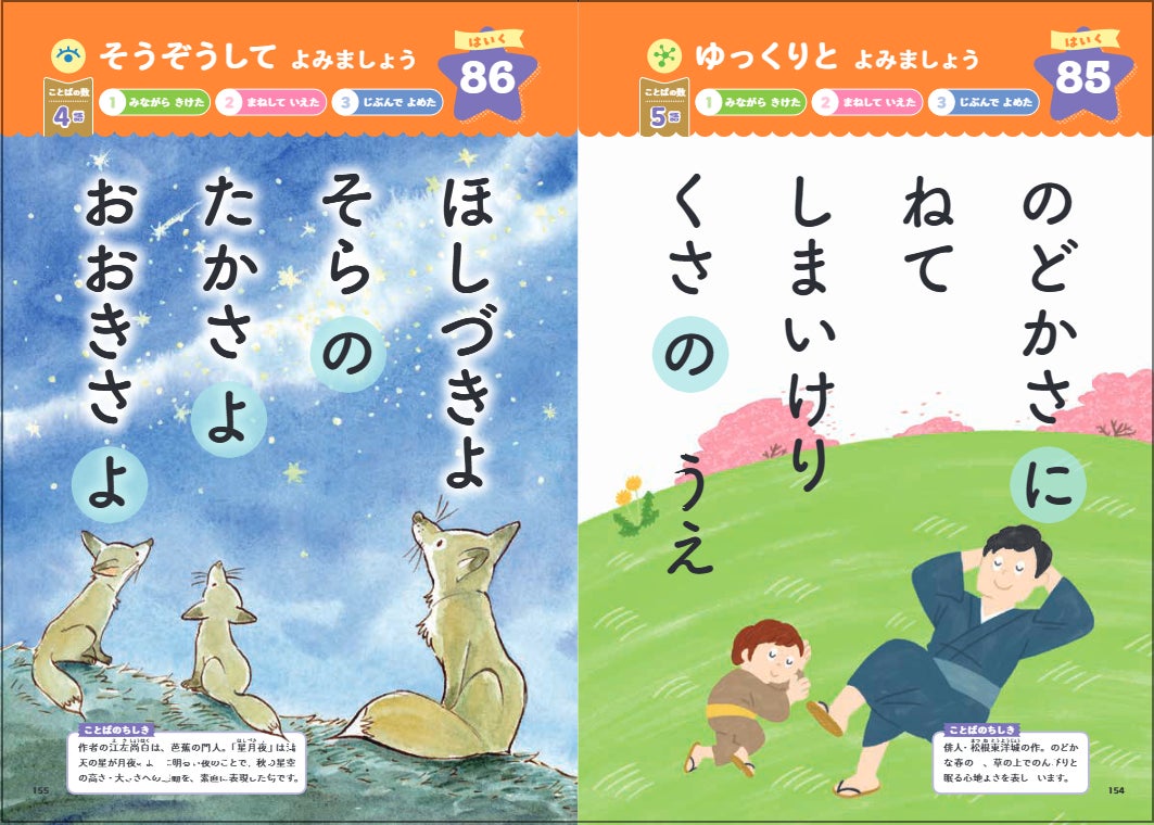 自分で読めるようになったら、読み方を意識することで音読効果がさらにアップ。表現豊かなことばにふれ、自然と語いも増えていきます。
