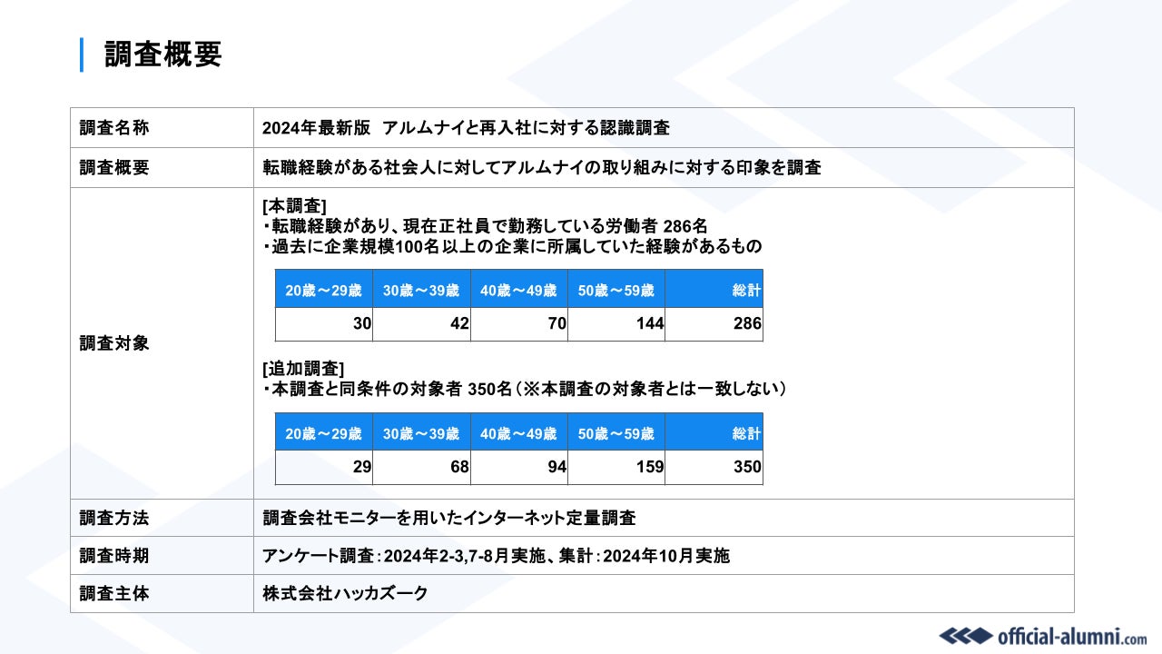 ●本調査を引用いただく際は、出所として株式会社ハッカズーク「2024年最新版 アルムナイと再入社に対する認識調査」と記載してください。