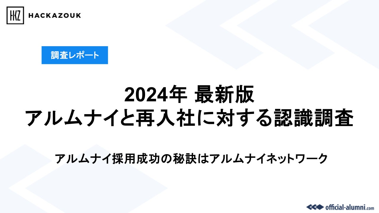 株式会社ハッカズーク(本社:東京都文京区、代表取締役グループCEO:鈴木仁志「以下ハッカズーク」)は、「2024年最新版 アルムナイと再入社に対する認識調査」の結果を発表いたします。▶調査結果レポート詳細についてはこちらから :https://official-alumni.com/documents/2FRh8Gtg