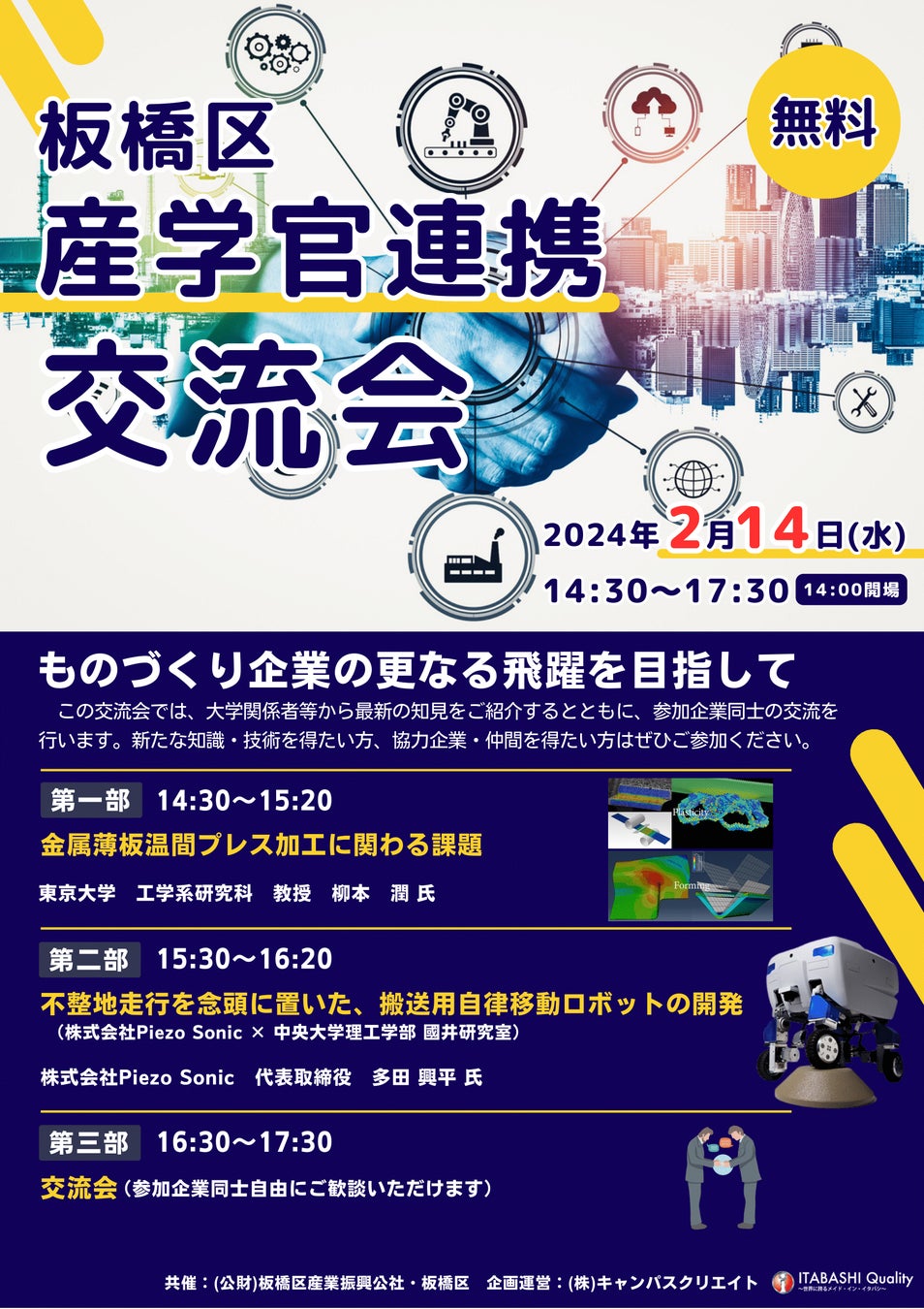 【2/14(水)開催】板橋区産学官連携交流会のご案内:ものづくり企業の更なる飛躍を目指して