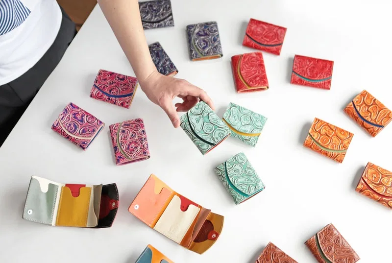 私たちは小さい財布の専門店として、18年以上にわたりモノづくりに携わってきました。大阪の工房ですべて自分たちでハンドメイドし、販売も職人が行なっています。