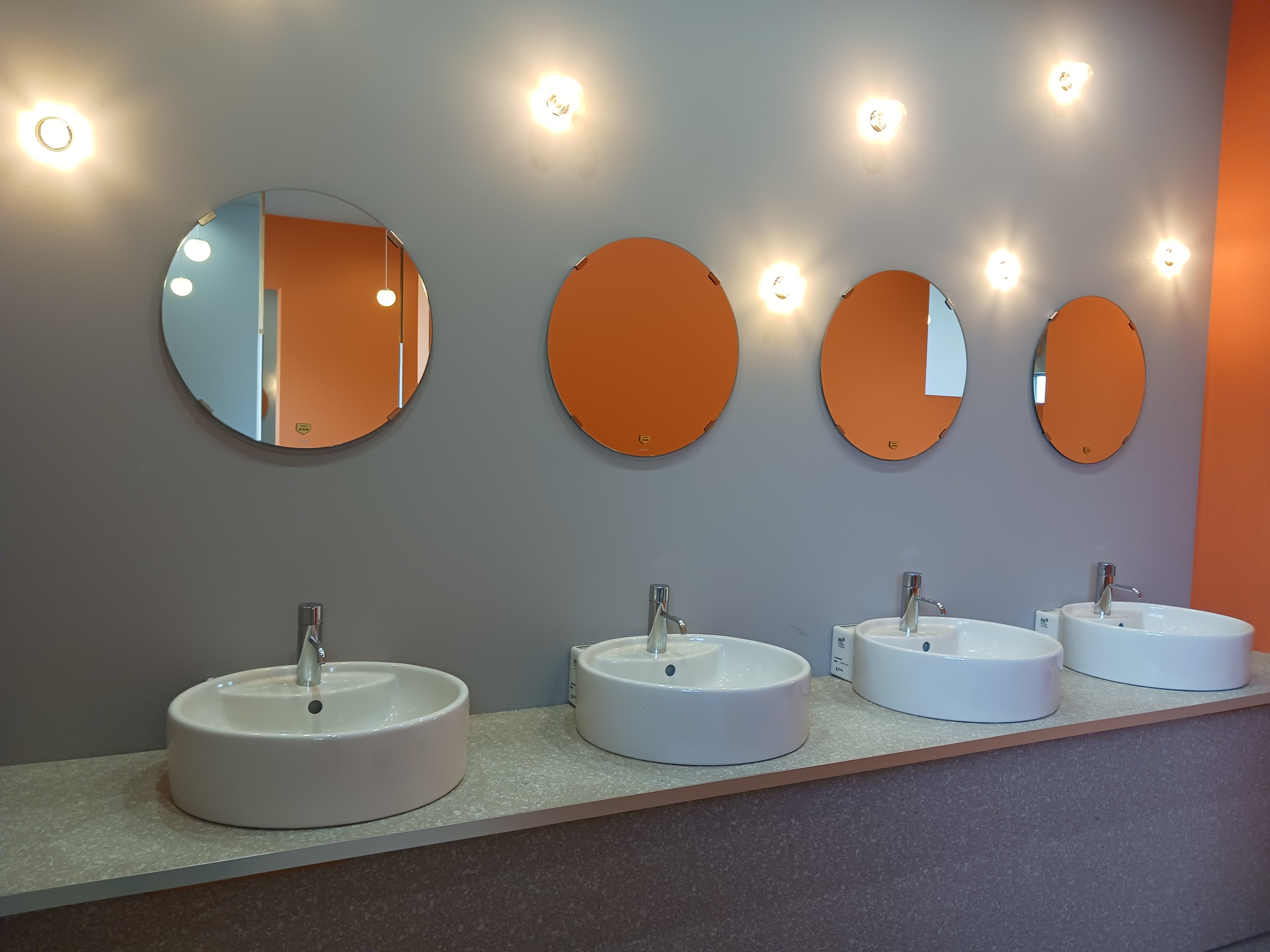 オレンジを基調としたパウダールームは、明るく華やかな雰囲気を創り出します。肌色を健康的に映し出す効果があるため、メイクや身だしなみを整える時間を心地良く、楽しく演出してくれます。