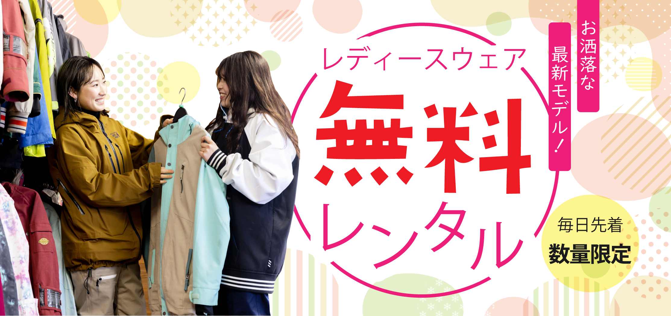 ◆「スノボデビューする女性限定」レディースウェア無料レンタル