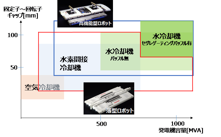 発電機の形状に合わせ、2種類のロボットによる保守サービスを提供