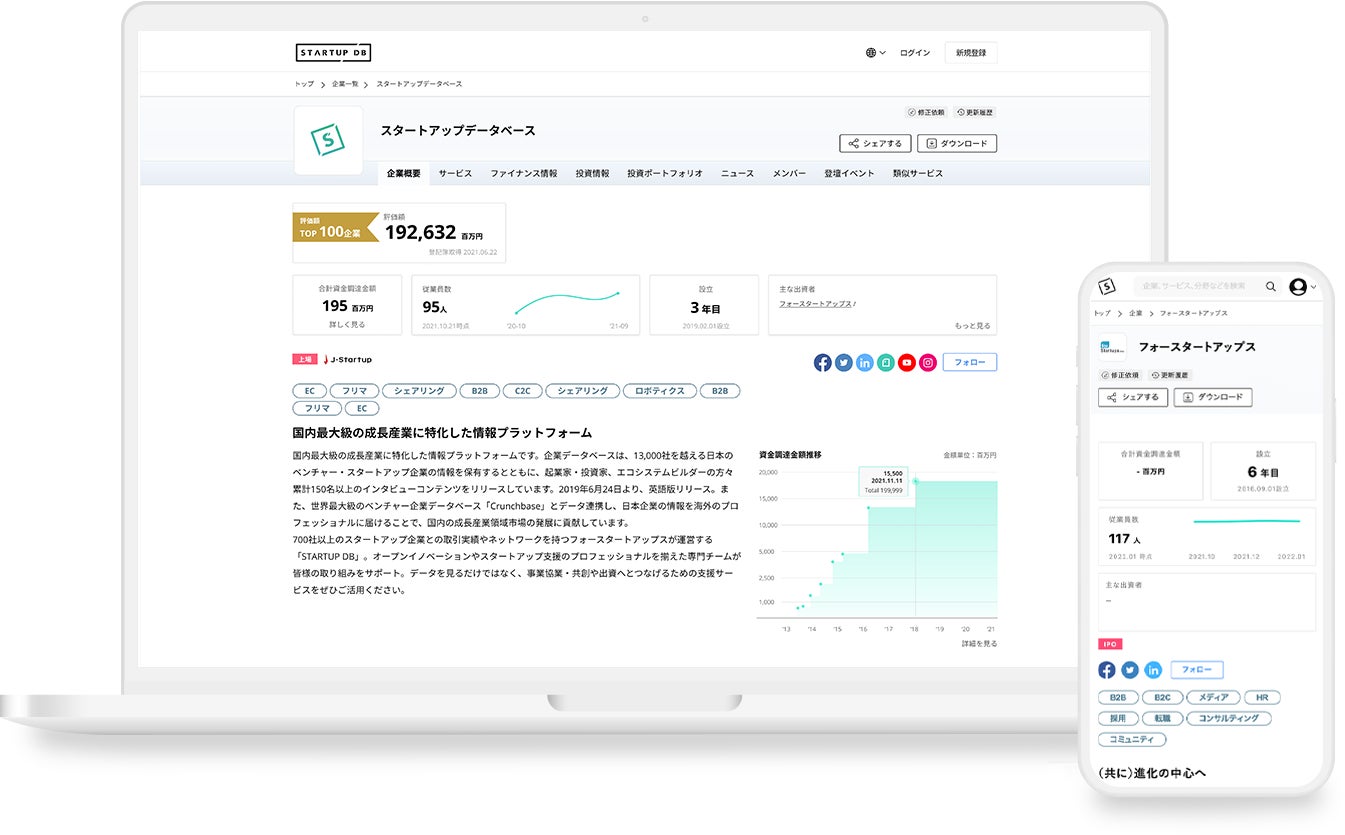2021年のスタートアップ市場への全体の投資額が過去最高の約1兆円に到達したことなどを背景に、スタートアップと大手事業会社などのオープンイノベーションはさらに加速化していく見込みです。『STARTUP DB ENTERPRISE』では、スタートアップ、エコシステムビルダー双方のアライアンス機会を増やしていくことで、事業創造の可能性を広げ、成長支援に繋げていくことを目指して参ります。