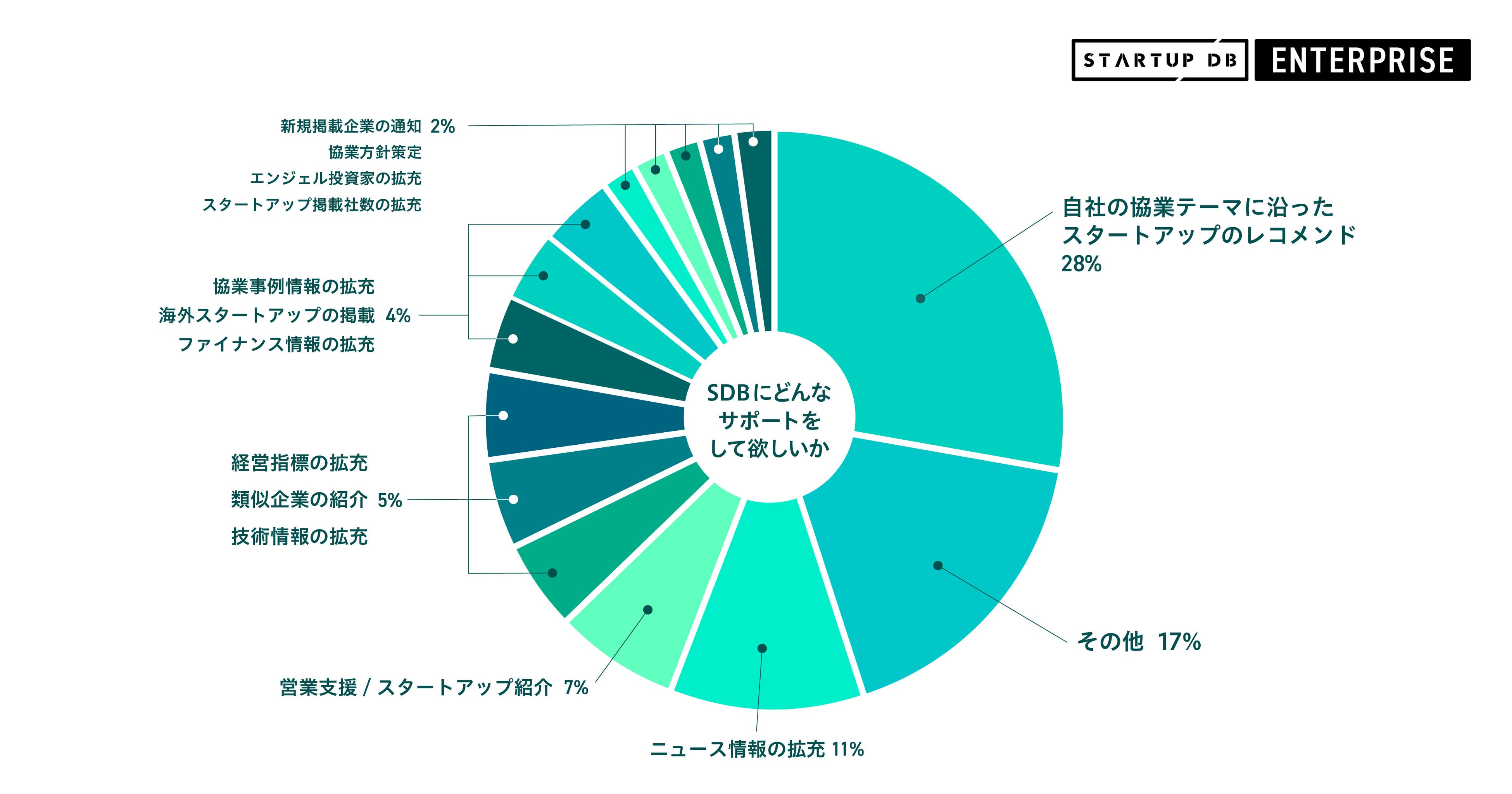 また一部回答には、経営指針の拡充として「事業計画など今後の見通しなどを提示いただけるとありがたい」「スタートアップの情報(経営戦略など)と業界分析が欲しい」といった声も寄せられており、データベースに留まらない人を介しての濃密な情報提供のニーズは一定存在するものと考えられます。