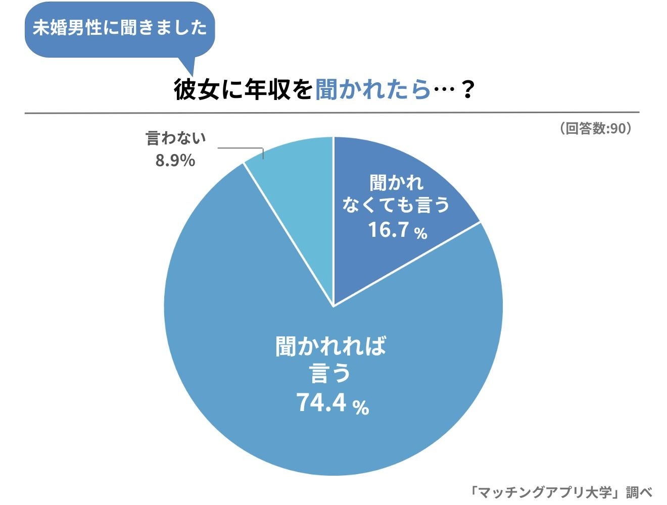 男性が「彼女から年収を聞かれたらどう感じるか」も気になるところではないでしょうか。独身男性90人の意見を聞いてみました。