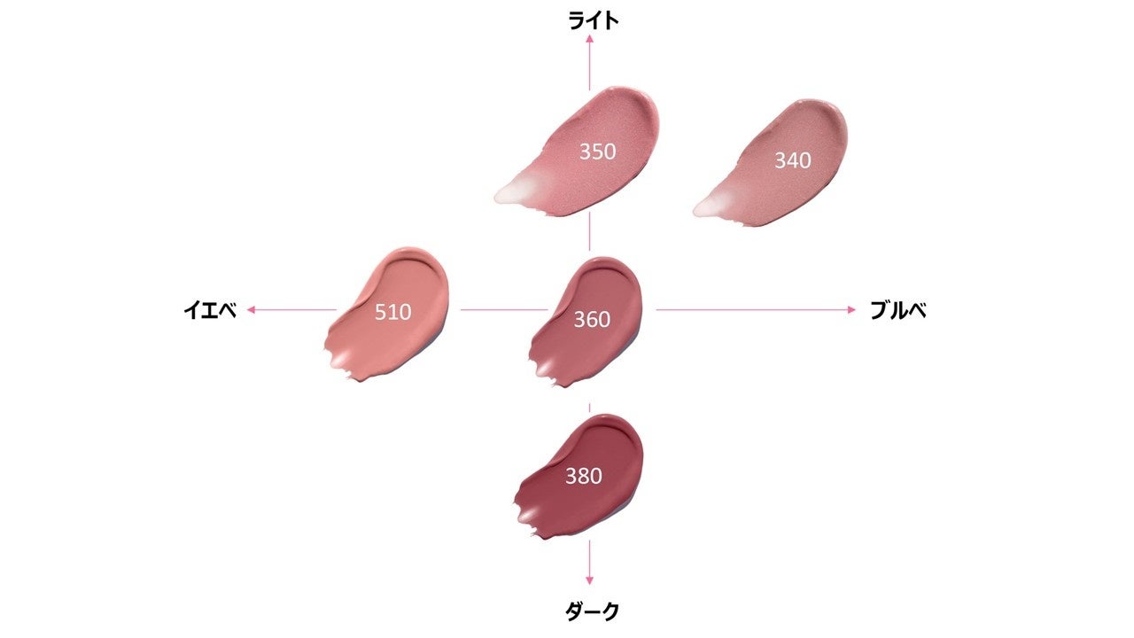 フェミニンなコーラルベージュ「510 バウンドレス ヌード」の全5色。