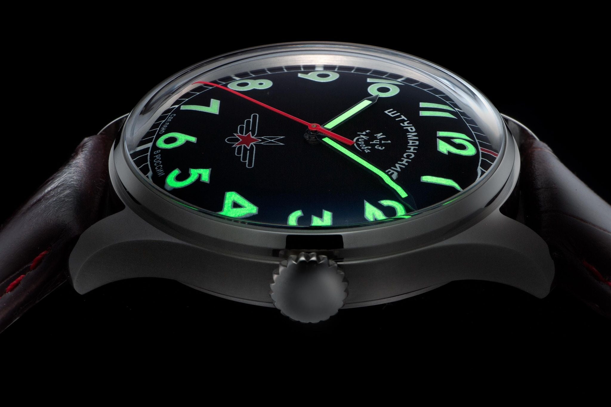 宇宙飛行を成功させた際に着用していたシュトゥルマンスキーのデザインに、スティールカラーダイヤルにブラックフェイスという色合いにしています。