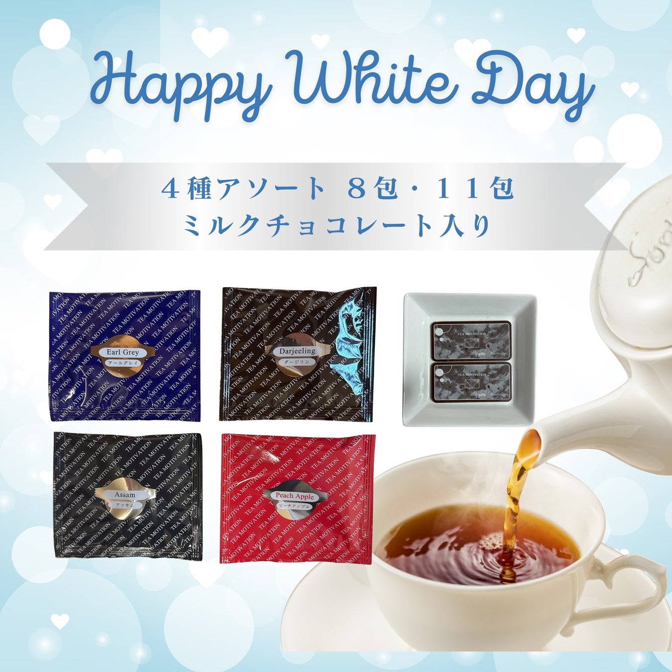 「TEA MOTIVATION ホワイトデーチョコレートセット」(8包入・11包入)を