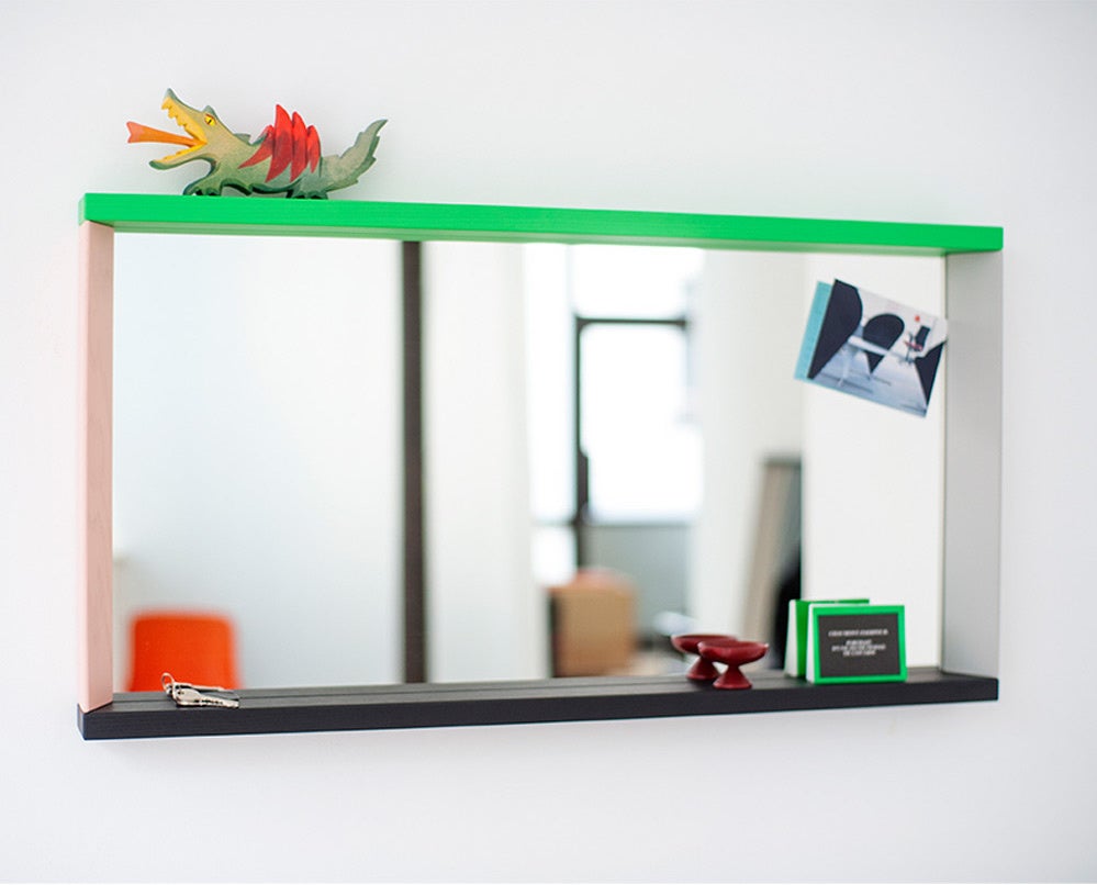 ジュリ・リショズによる「カラーフレームミラー」は、積み木とその無限の組み合わせにインスピレーションを得てデザインされました。サイズはスモール、ミディアム、ラージの3種類。木製のおもちゃのようなフレームは四方それぞれに異なる色が施され、グラフィカルな印象を与えます。