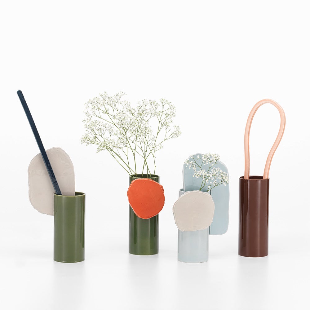 ロナン&エルワン・ブルレックによってデザインされた「ヴァース デクパージュ」は、鋳型で成形された円筒形の本体に、粘土で作られた抽象的な棒や円盤型のパーツで構成され、風変りで、ちょっと皮肉めいた、詩的な魅力に溢れています。