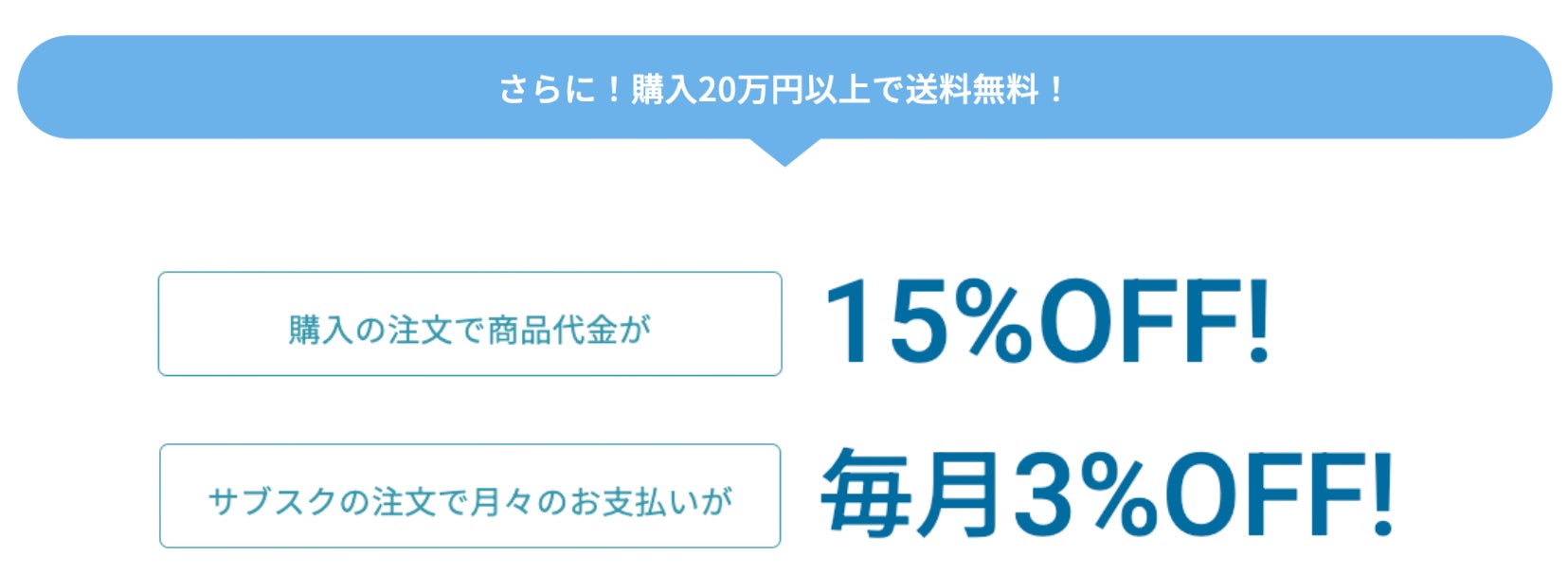 サブスクの場合:注文した月額料金の総額に対して毎月3%OFFの割引が適用