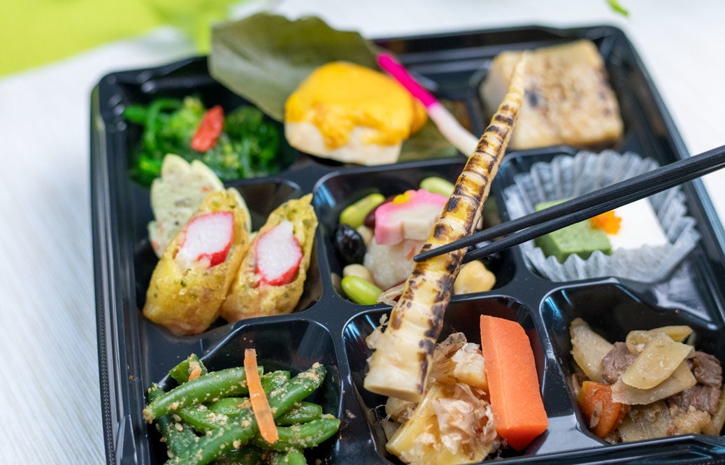 新緑の風薫る色鮮やかなアラカルト9品に、鯛を贅沢に使用した鯛めし、抹茶の風味を楽しむ冷やしうどん、デザートにはミニたい焼きなど、バラエティー豊かなラインアップに。お好みのドリンクをセットにして全国へお届けします。