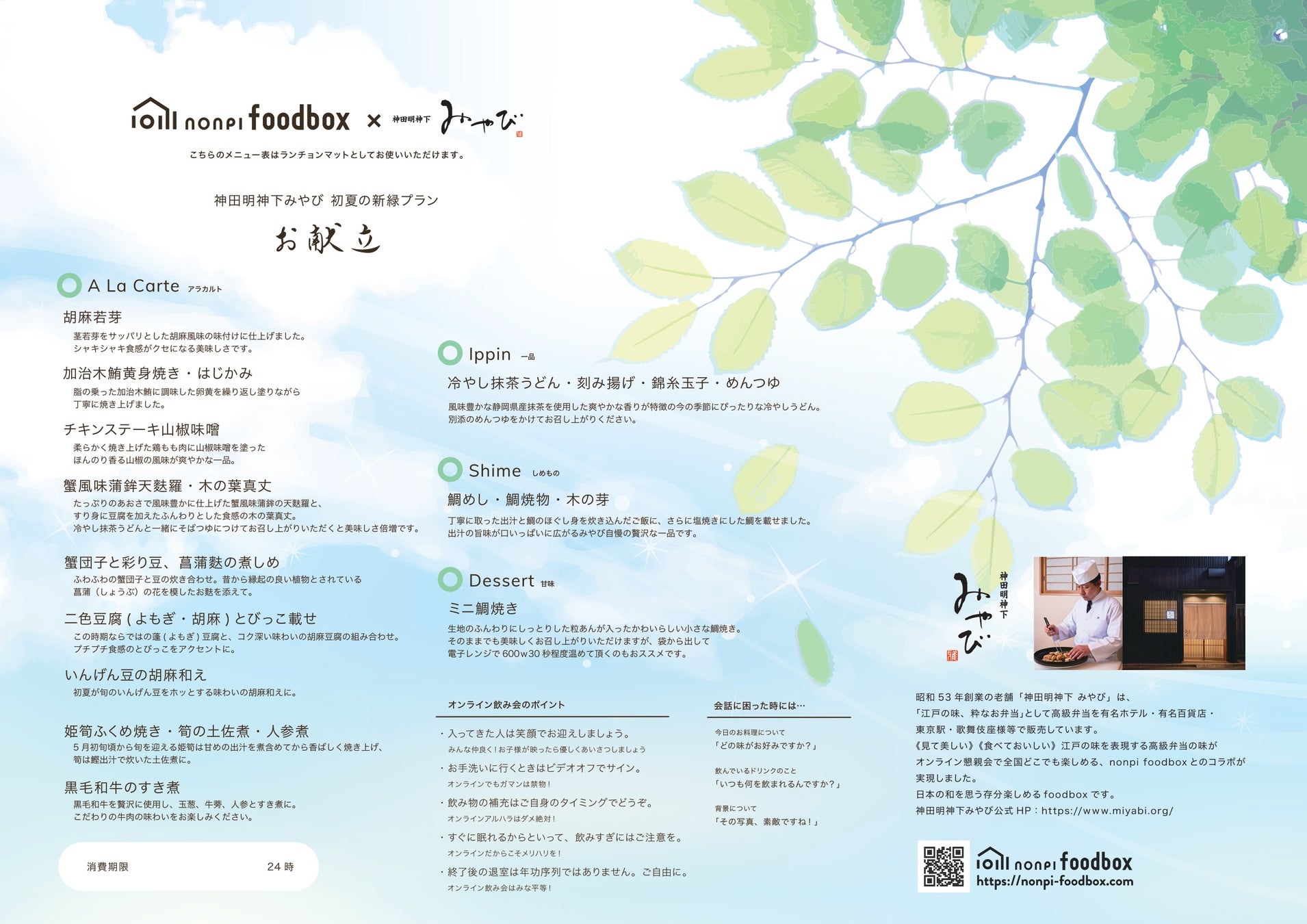 - nonpi foodbox™ 『神田明神下みやび 初夏の新緑プラン』詳細