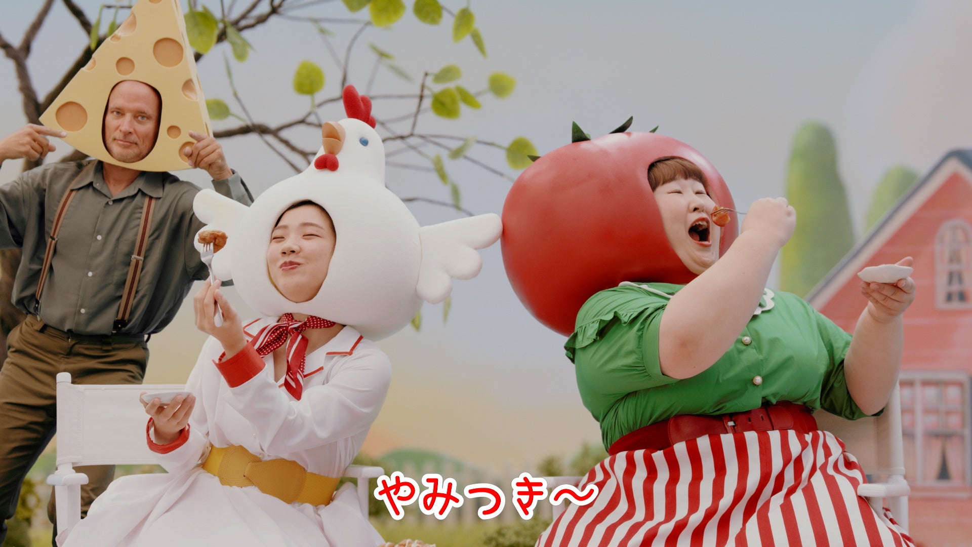 CM内容 :コラボメニューで使用した食材をモチーフにした被り物をかぶった3時のヒロインが、一度聴いたら耳に残ること間違い無しのメロディーに合わせて踊ります。怪しいダンスと数々のやみつきメニューが見どころです。