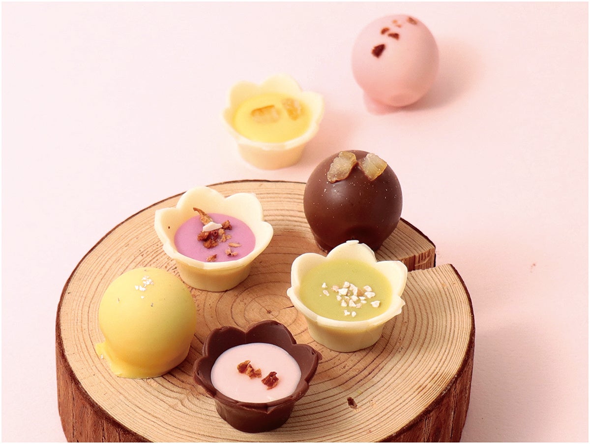 ビター、ミルク、ホワイトの3種のショコラを使い分け、2トーンやマーブル模様など見た目にも華やかに仕上げました。
