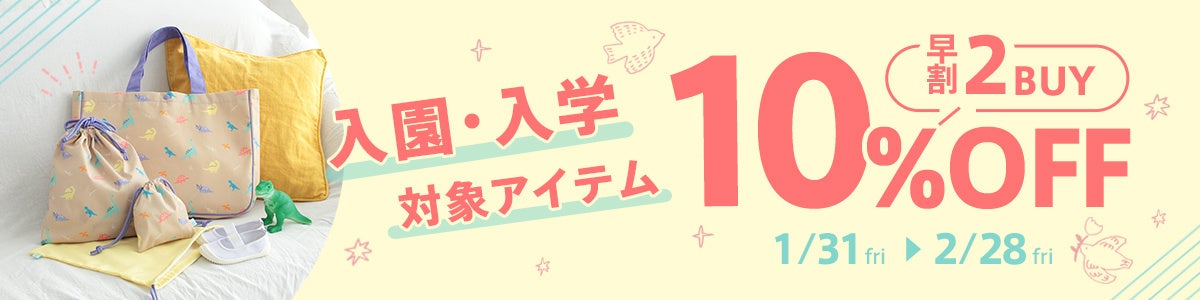 対象商品を2点以上購入で10%OFFとなる早割キャンペーンは、2月28日(金)までの期間限定。準備万端で入学・入園式を迎えるために早めのご購入がお得&おすすめです!