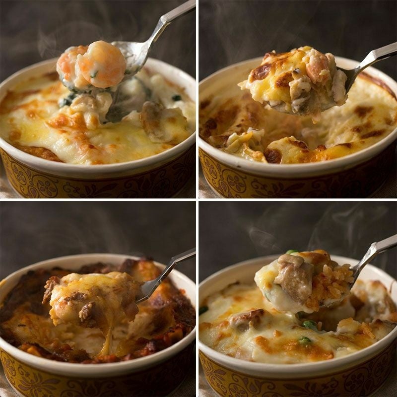 クリーミーなホワイトソースと香ばしいチーズが食欲をそそる、えびマカロニグラタンとチキンドリアをセットでご用意。さらに、ビーフラザニアやシーフードラザニア、茹でたパスタと和えるだけのパスタソース3種など、冬の献立に役立つ全7食セットを冷凍でお届けいたします。